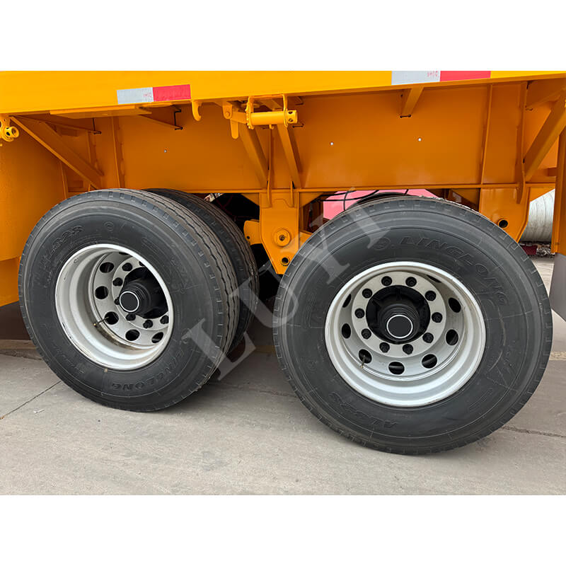 Xe được trang bị cầu trục 2 trục nặng 13 tấn, tùy chọn nhãn hiệu BPW hoặc Fuhua, kết hợp với hệ thống treo cơ khí đáng tin cậy mang lại sự ổn định khi lái mạnh mẽ; sử dụng lốp 12R22.5, phù hợp với nhiều điều kiện đường xá khác nhau, chân chống tiêu chuẩn 28 tấn đảm bảo an toàn khi đỗ xe. Kingpin cung cấp hai tùy chọn: JOST 2 inch (50 mm) hoặc 3,5 inch (90 mm), tương thích với các máy kéo khác nhau. Thiết kế cột có thể cố định gỗ chắc chắn để tránh dịch chuyển trong quá trình vận chuyển và màu sắc có thể được tùy chỉnh theo nhu cầu của khách hàng, kết hợp giữa tính thực tế và tính linh hoạt để cung cấp giải pháp hiệu quả cho hoạt động hậu cần và vận chuyển gỗ.
