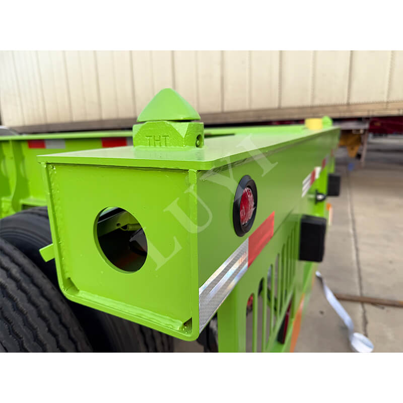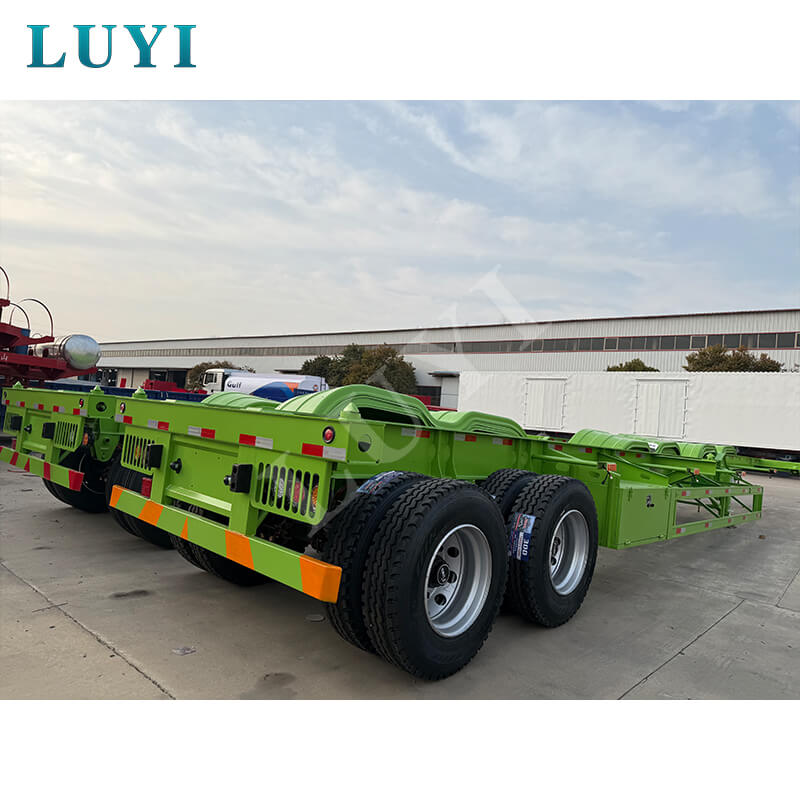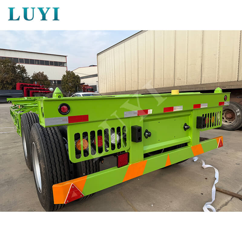 Sơ mi rơ moóc khung xương container chở hàng Luyi 2 trục có xuất xứ từ tỉnh Sơn Đông, Trung Quốc là thiết bị vận tải hiệu quả được thiết kế đặc biệt cho xe tải, với chức năng cốt lõi tập trung vào việc vận chuyển container an toàn.