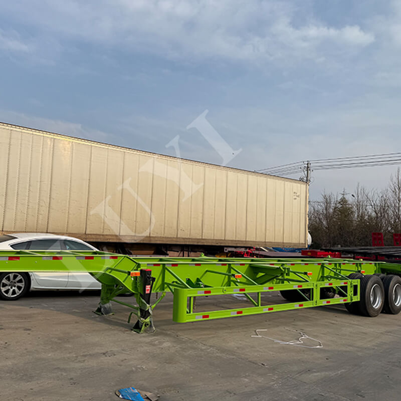Xe được làm bằng thép chất lượng cao, có kết cấu ổn định và bền bỉ. Nó có tải trọng hiệu dụng tối đa là 40 tấn, thích hợp vận chuyển container 20/40 tấn. Kích thước thân xe là 14000x250x1800mm, được trang bị 2 trục thương hiệu Fuwa và hệ thống treo cơ hoặc khí nén tùy chọn, mang lại cả sự ổn định khi lái và hiệu suất giảm xóc. Nó được trang bị lốp có thông số kỹ thuật 12R22.5, 12.00R20 và 11R22.5, thích ứng với các điều kiện đường khác nhau. Lò xo lá 90mm (rộng) × 13mm (độ dày) × 10 lớp giúp nâng cao hơn nữa khả năng chịu tải, chân chống tiêu chuẩn 28 tấn đảm bảo an toàn khi đỗ xe.