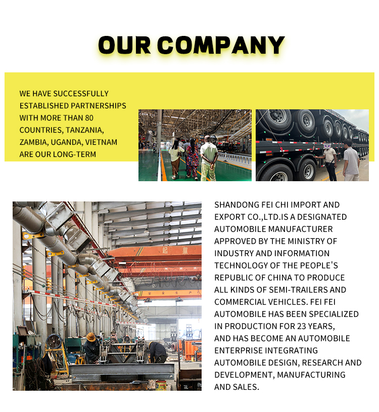 Nhà máy của chúng tôi không chỉ sản xuất máy kéo mà còn sản xuất xe ben, xe phun nước, xe cần cẩu, xe trộn, rơ moóc tự đổ, rơ moóc bồn, rơ moóc sàn thấp, rơ moóc loại bỏ bụi, v.v. Nhà máy của chúng tôi có quy mô lớn và có thể tùy chỉnh các sản phẩm khác nhau theo yêu cầu khác nhau của khách hàng