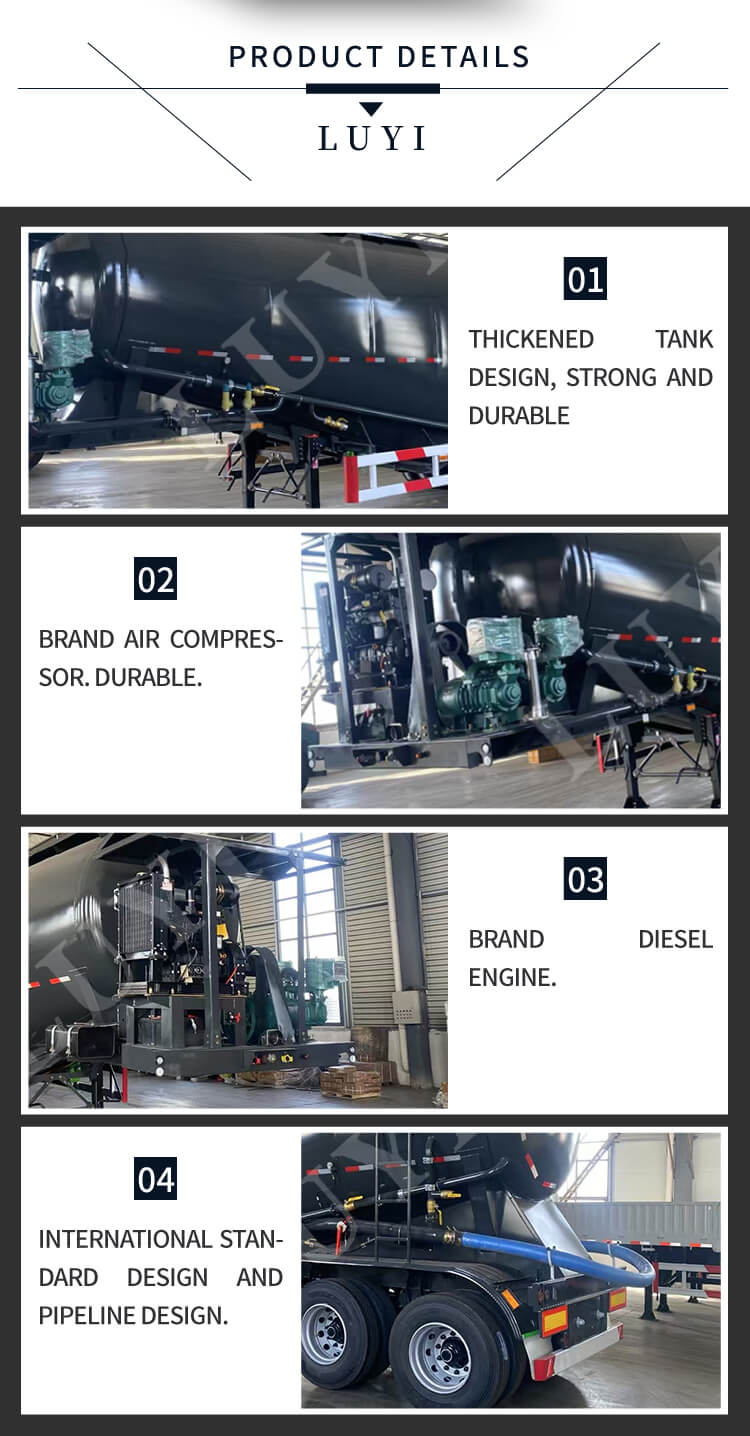 Sơ mi rơ moóc xi măng 3 trục 35 mét khối Luyi có xuất xứ từ tỉnh Sơn Đông, Trung Quốc là loại sơ mi rơ moóc chất lượng cao được chế tạo đặc biệt để vận chuyển xi măng số lượng lớn. Nó có tải trọng 80 tấn, tải trọng hiệu dụng từ 60 tấn đến 80 tấn và tải trọng hiệu dụng tối đa 80.000 kg, có thể đáp ứng hiệu quả nhu cầu vận chuyển khối lượng lớn.