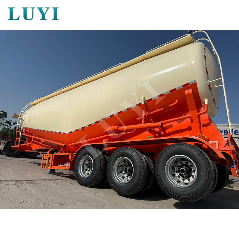 Sơ mi rơ moóc bồn xi măng số lượng lớn loại V 3 trục, dung tích 40 mét khối của LUYI, tỉnh Sơn Đông, Trung Quốc, được làm bằng thép chất lượng cao và trong tình trạng hoàn toàn mới. Nó được thiết kế đặc biệt để vận chuyển bột xi măng số lượng lớn, với tải trọng hiệu quả tối đa vượt quá 30.000 kg, có khả năng chuyên chở mạnh mẽ.