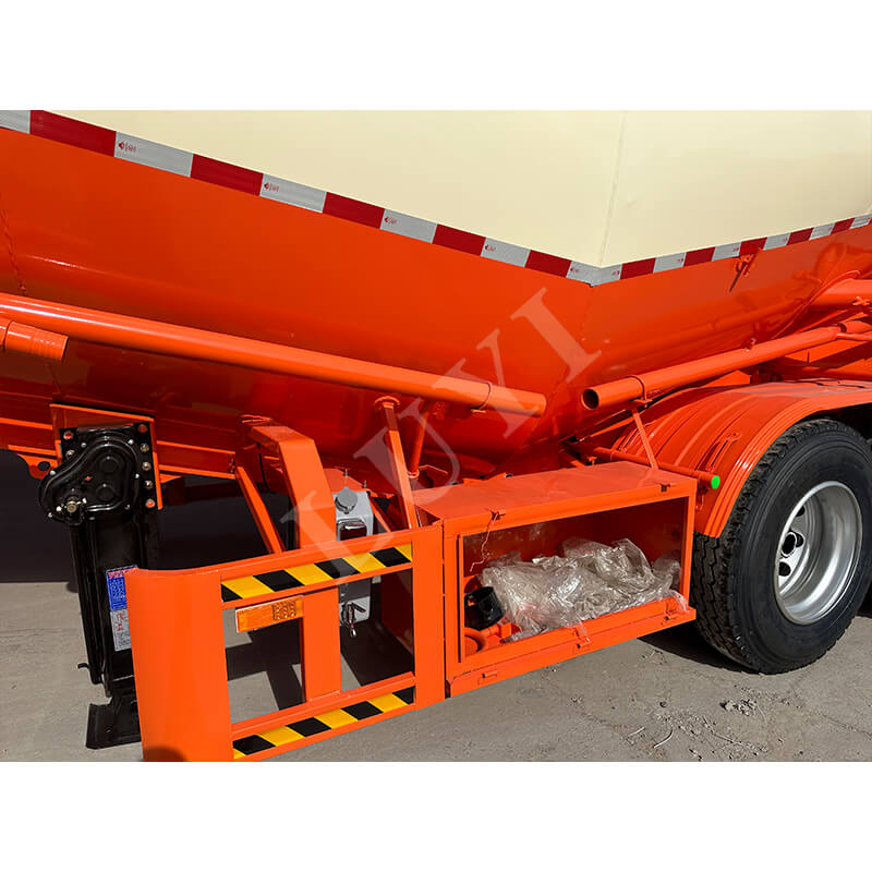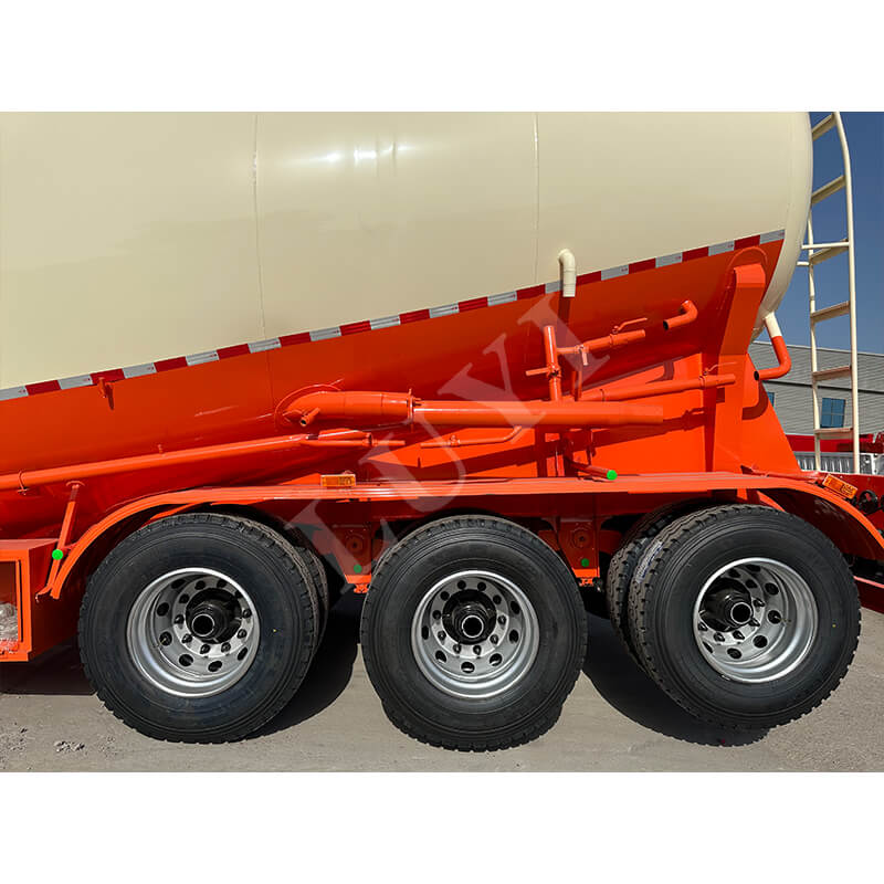 Kích thước trailer là 10500×2550×4000 mm. Xe được trang bị hai tùy chọn hệ thống treo cơ/khí, kết hợp với kết cấu ổn định 3 trục và chân chống hạng nặng 28 tấn để đảm bảo sự ổn định trong quá trình đỗ và lái xe. Hệ thống phanh hai dòng tăng cường độ an toàn. Các tùy chọn lốp bao gồm nhiều thông số kỹ thuật khác nhau như 11.00r20 và 12r22.5, và kingpin có hai mẫu: JOST 50 mm / 90 mm. Ngoài ra, màu sắc có thể được tùy chỉnh theo nhu cầu, hoàn toàn thích ứng với các tình huống vận chuyển khác nhau và yêu cầu thẩm mỹ, khiến nó trở thành thiết bị đáng tin cậy để vận chuyển xi măng số lượng lớn.