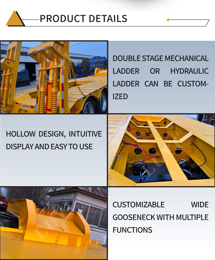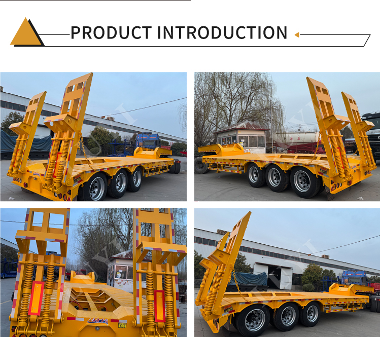 Được trang bị 3 trục Fuwa hoặc BPW cao cấp, xe moóc cung cấp các tùy chọn hệ thống treo linh hoạt (cơ hoặc khí) để di chuyển ổn định trên nhiều cung đường khác nhau. Nó đi kèm với các lựa chọn lốp 12R22.5/12.00R20/11R22.5, thang thủy lực để chất/dỡ thiết bị nặng thuận tiện và càng đáp tiêu chuẩn 28 tấn để đỗ xe an toàn. Chốt vua JOST 2 inch (50mm) hoặc 3,5 inch (90mm) đảm bảo kết nối chắc chắn với máy kéo, đồng thời màu sắc có thể tùy chỉnh đáp ứng nhu cầu cá nhân hóa. Bền bỉ, dễ thích nghi, lý tưởng cho việc vận chuyển hàng hóa nặng hiệu quả.