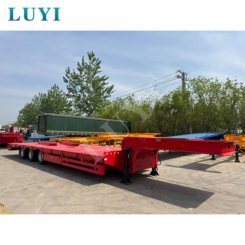 Sơ mi rơ moóc phẳng khung gầm thấp 3 trục nặng 80 tấn LUYI, một phương tiện vận tải hạng nặng hoàn toàn mới của Sơn Đông, Trung Quốc, được thiết kế riêng cho các tình huống vận chuyển thiết bị nặng.