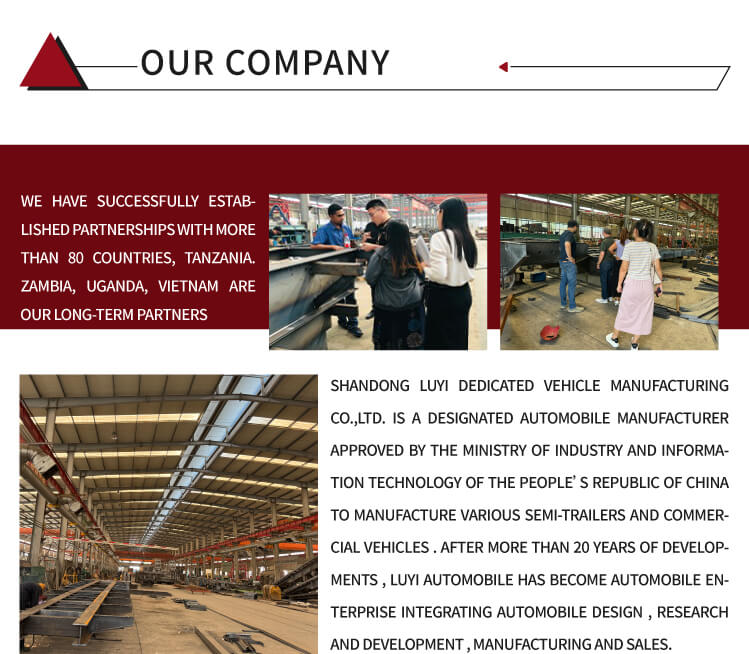 Nhà máy của chúng tôi không chỉ sản xuất máy kéo mà còn sản xuất xe ben, xe phun nước, xe cần cẩu, xe trộn, rơ moóc tự đổ, rơ moóc bồn, rơ moóc sàn thấp, rơ moóc loại bỏ bụi, v.v. Nhà máy của chúng tôi có quy mô lớn và có thể tùy chỉnh các sản phẩm khác nhau theo yêu cầu khác nhau của khách hàng