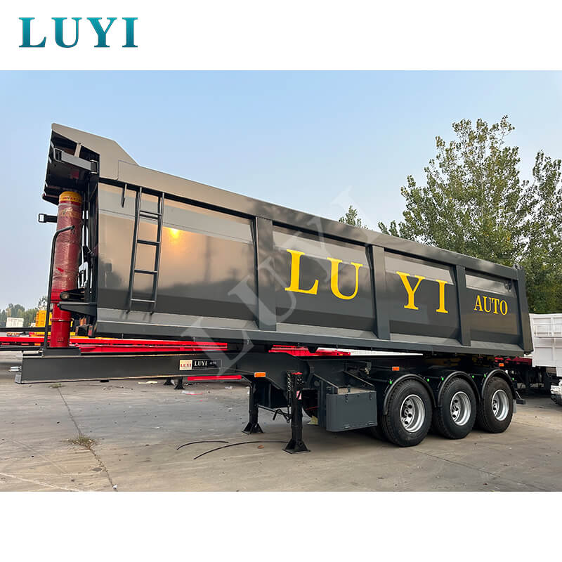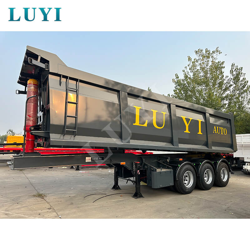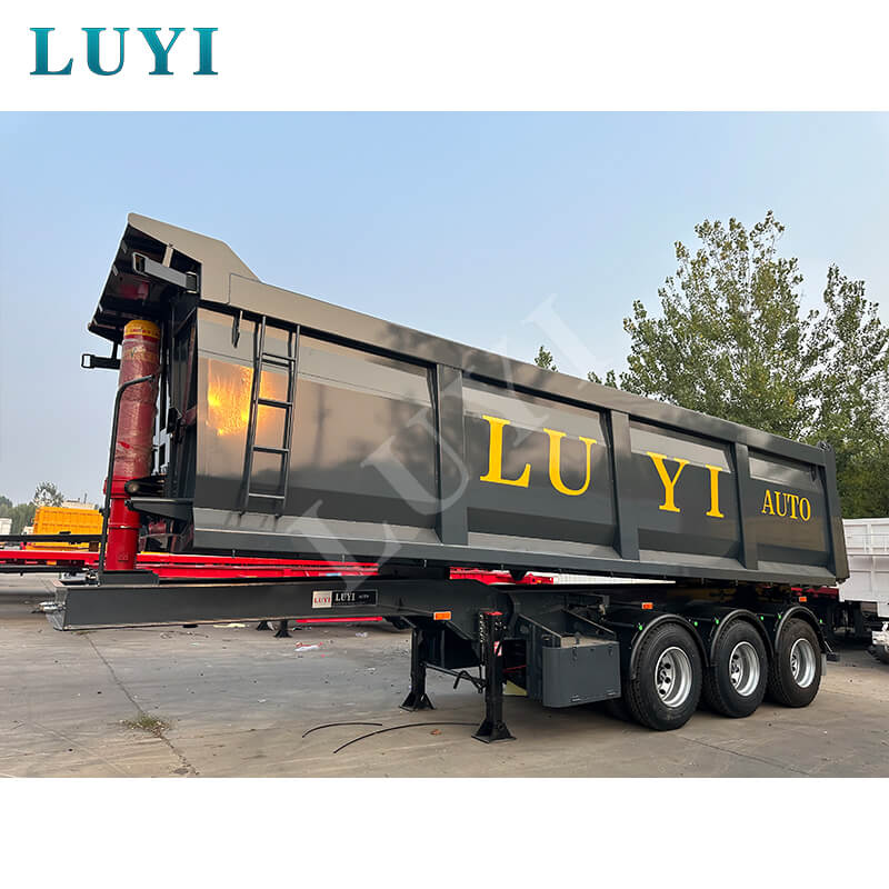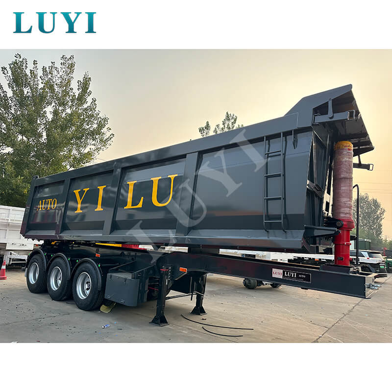 Loại sơ mi rơ moóc đổ nghiêng phía sau 3 trục này có lớp phủ màu đen và thiết kế hộp chở hàng hình chữ nhật, được chế tạo đặc biệt để tự bốc dỡ và vận chuyển vật liệu rời. Nó được áp dụng rộng rãi trong các tình huống như mỏ, công trường và vận chuyển vật liệu xây dựng. Cách bố trí 3 trục giúp tăng cường đáng kể khả năng chịu tải và độ ổn định khi lái xe, đáp ứng hoàn hảo các yêu cầu về tải trọng lớn và giới hạn tuân thủ. Thùng chở hàng hình chữ nhật có thể tích đều đặn (25–42 cbm), đảm bảo hiệu quả chất tải cao hơn, khung thép cường độ cao đảm bảo độ bền kết cấu.