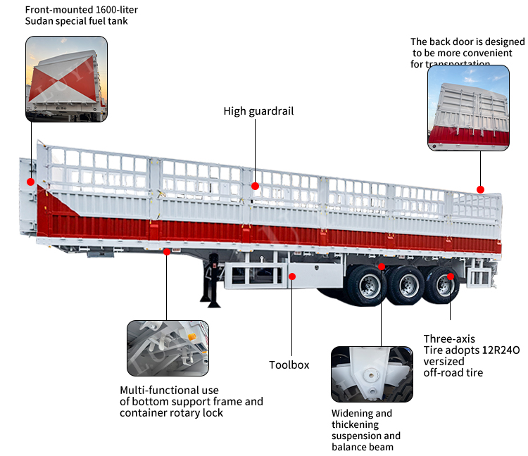 Thẻ nóng: Trailer bán hàng rào 3 trục cho hàng rời 60 tấn