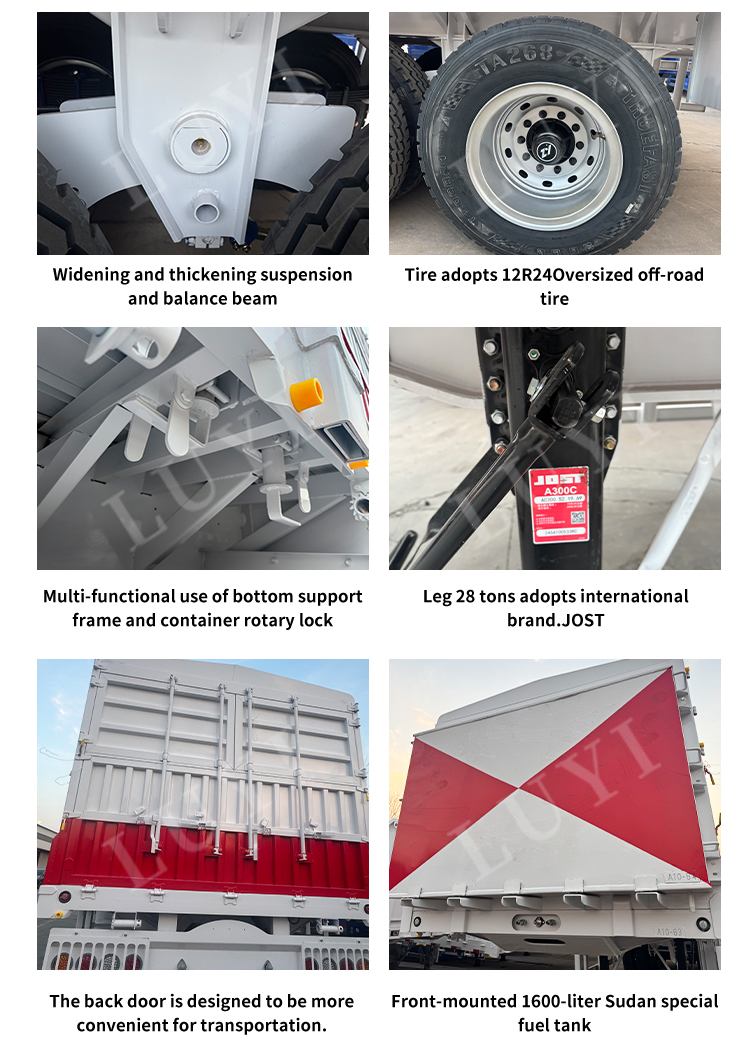 Xe moóc được trang bị càng đáp Jost nặng 28 tấn và hệ thống chống bó cứng phanh ABS để nâng cao độ an toàn. Nó có nhiều chứng nhận bao gồm ECE, GCC, CE, DOT và ISO/TS16949, đáp ứng các tiêu chuẩn chất lượng toàn cầu. Nó không tự đổ và hỗ trợ các tùy chọn màu tùy chỉnh. Lý tưởng để vận chuyển than, ngũ cốc, quặng và hàng nông sản, xe moóc hoàn toàn mới này được thiết kế để giải quyết các điều kiện đường sá khắc nghiệt ở Trung Á và Châu Phi, mang lại hiệu suất đáng tin cậy cho đội tàu hậu cần, hầm mỏ và trang trại.