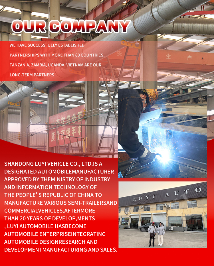 Sơ mi rơ moóc 3 trục LUYI là loại xe ngựa vận tải hạng nặng được chế tạo cho nhu cầu chở hàng rời, có các mức tải trọng 50T, 60T và 80T. Với kích thước 1550025504000mm, nó có thân thép chắc chắn và đi kèm với hai tùy chọn hệ thống treo: hệ thống treo cơ khí để có độ bền tiết kiệm chi phí và hệ thống treo khí nén để mang lại những chuyến đi êm ái hơn trên những con đường gồ ghề. Được trang bị 12 chiếc lốp 12r22.5 và trục hàng đầu của Feichi, BPW hoặc Fuwa, nó đảm bảo hiệu suất ổn định ngay cả khi chịu tải tối đa.