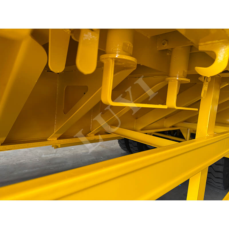 Toàn bộ thân xe được làm bằng thép chất lượng cao, có kết cấu chắc chắn và bền bỉ với khả năng chống mài mòn và biến dạng mạnh mẽ, có khả năng thích ứng với môi trường vận chuyển phức tạp trong thời gian dài. Xe được trang bị 3 cầu trục thương hiệu 13 tấn, kết hợp với lốp thông số 12R22.5 và hệ thống treo cơ khí, đảm bảo tính ổn định lái tuyệt vời và di chuyển êm ái ngay cả trên các điều kiện đường khác nhau. Chân chống tiêu chuẩn 28 tấn cung cấp sự hỗ trợ ổn định cho hoạt động xếp và dỡ hàng, đồng thời chốt đỡ cung cấp hai tùy chọn: 2 inch (50 mm) và 3,5 inch (90 mm), tương thích với hầu hết các máy kéo. Ngoài ra, màu sắc có thể được tùy chỉnh theo nhu cầu của khách hàng, đáp ứng đầy đủ sở thích sử dụng cá nhân và tạo điều kiện thuận lợi cho việc vận chuyển hiệu quả.