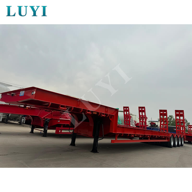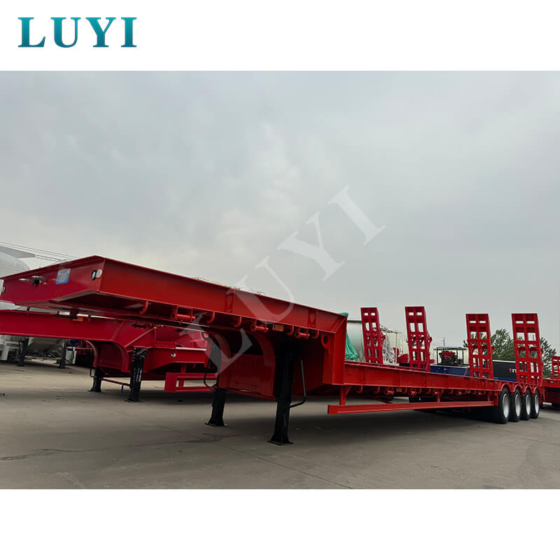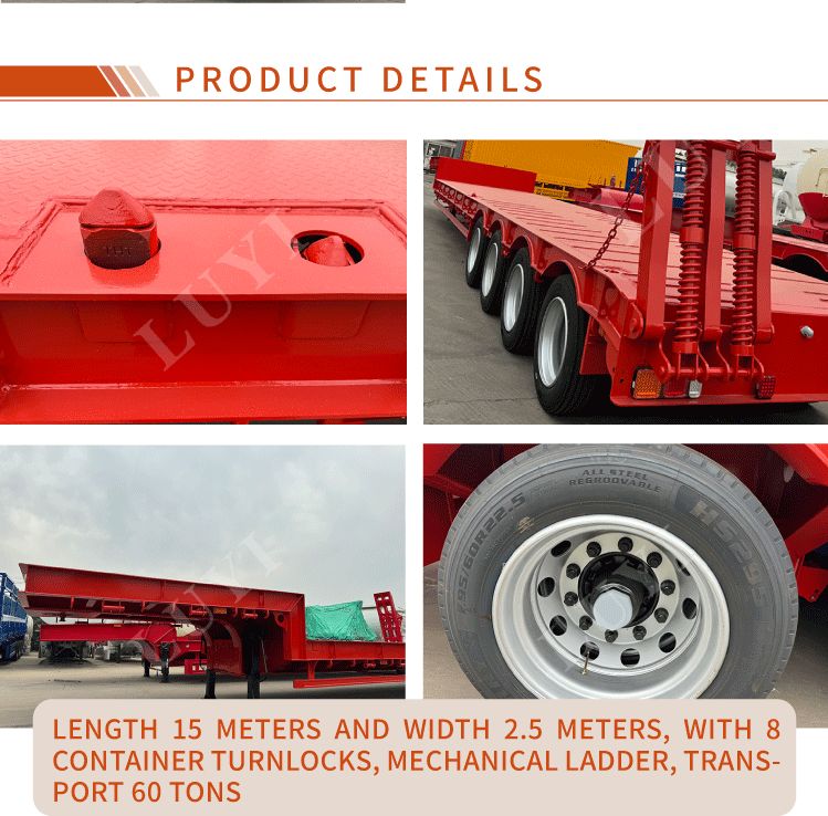 Sơ mi rơ moóc cổ ngỗng 4 trục 60 tấn Luyi được sản xuất tại tỉnh Sơn Đông, Trung Quốc, là loại xe tải rơ moóc chuyên dụng vận chuyển hàng hóa nặng. Thân xe moóc được làm bằng thép chất lượng cao, có kết cấu chắc chắn và bền bỉ. Tải trọng hiệu quả tối đa của nó không chỉ vượt quá 30.000 kg mà còn đạt tới 100 tấn, dễ dàng chở nhiều loại hàng hóa nặng khác nhau và đáp ứng nhu cầu vận chuyển cường độ cao.