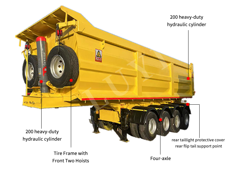 Có nguồn gốc từ Sơn Đông, cơ sở sản xuất chất lượng cao của Trung Quốc, Sơ mi rơ moóc tự đổ 4 trục LUYI là một thiết bị hiệu suất cao được thiết kế để vận chuyển hàng rời hạng nặng. Được chế tạo bằng thép cường độ cao, nó kết hợp độ bền và độ ổn định chịu tải, có tải trọng tối đa 80 tấn và thích ứng với các điều kiện làm việc đầy đủ với khả năng tải 60-80 tấn. Nó rất phù hợp cho việc vận chuyển đường dài các hàng hóa số lượng lớn như than, cát và quặng.