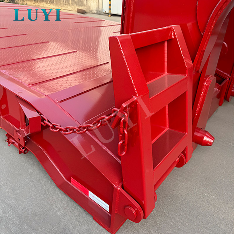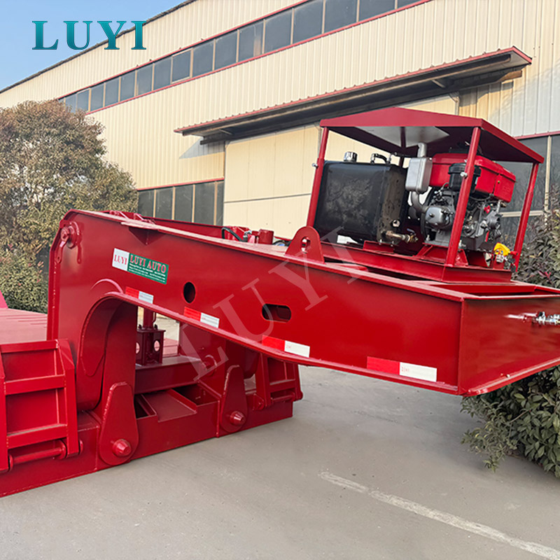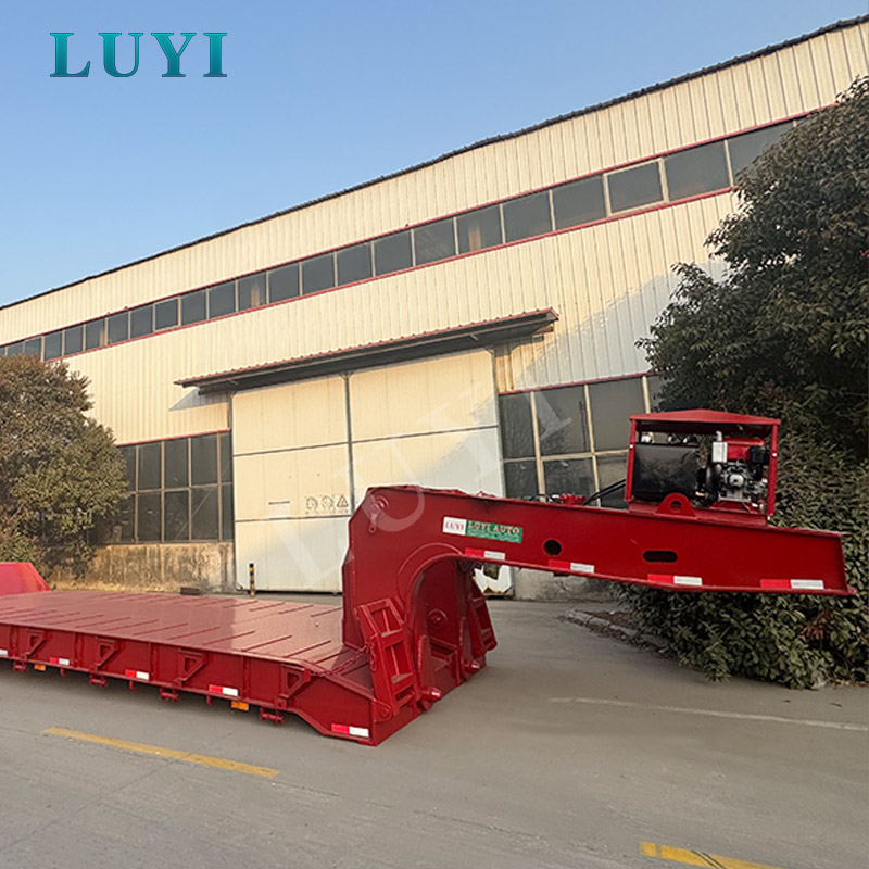Đường dốc tải an toàn và bền bỉ:Xe moóc được trang bị các đường dốc tải được gia cố cực rộng, được thiết kế đặc biệt để chịu được trọng lượng của loại xe nặng hơn.thiết bị xây dựng và khai thác mỏtrailer này được xây dựng cho.