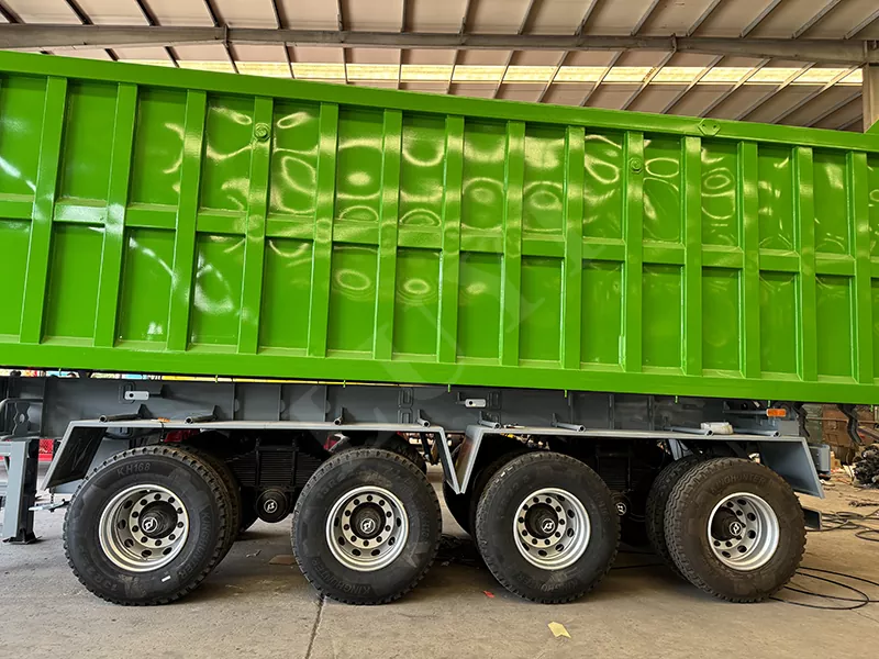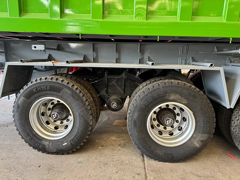 4x16t Guangdong Fuhua Brand hoặc BPW Brand. Dây thép tùy chọn hoặc lốp máy chân không, lốp đơn và lốp đôi có thể được thiết kế. Hệ thống treo không khí bốn trục hoặc hệ thống treo cơ học, lò xo lá nặng, Wabco ABS. Yost Outriggers và chân kéo, van rơle WABCO, mạch điện 24V, đèn pha LED, thiết kế cản chống va chạm, được trang bị các hộp dụng cụ có kích thước lớn, toàn bộ phương tiện áp dụng quy trình phun bột đặc biệt, nhà máy phun sáp, để đảm bảo an toàn cho việc vận chuyển biển.