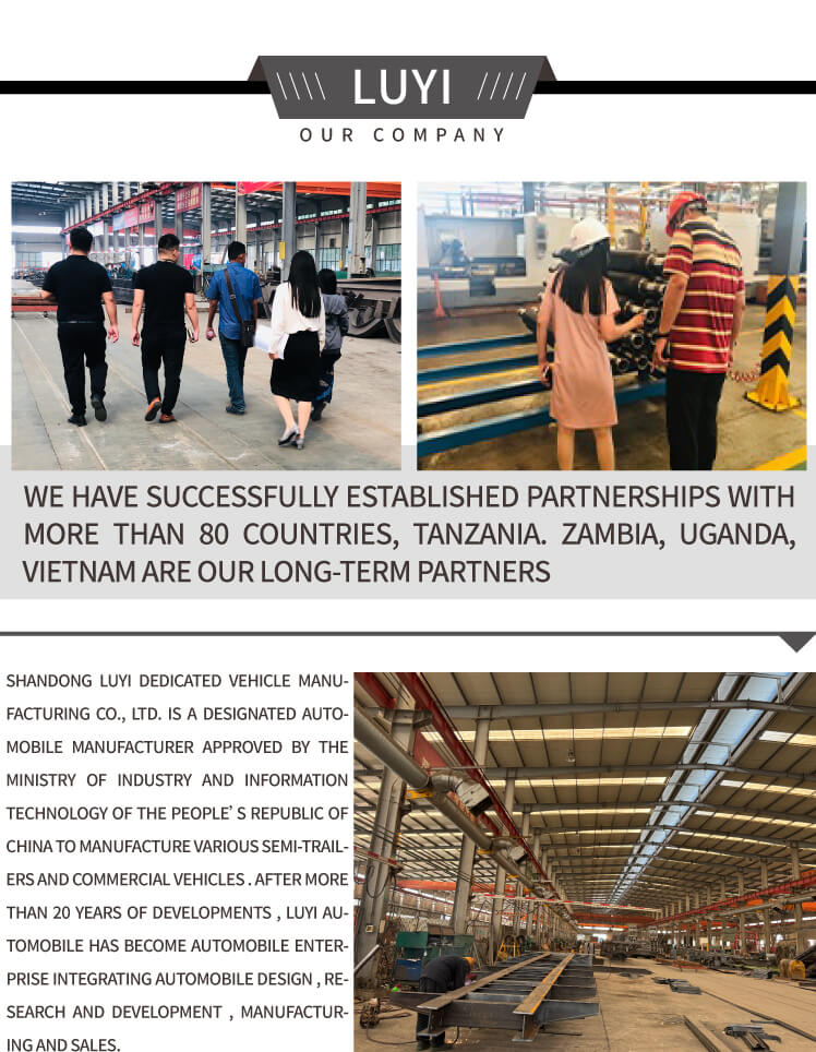 Trả lời: Chúng tôi có nhà máy riêng và chúng tôi có 20 năm kinh nghiệm trong sản xuất sơ mi rơ moóc. Chúng tôi chân thành chào đón bạn đến thăm nhà máy của chúng tôi.