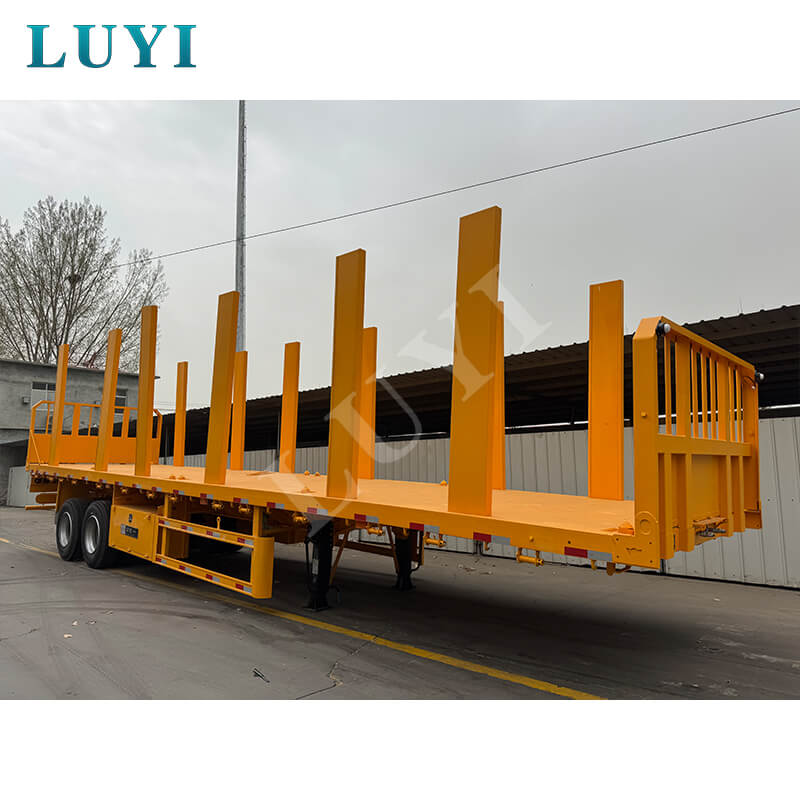Rơ moóc cột phẳng 2 trục 40 tấn của LUYI được thiết kế để vận chuyển gỗ với các tùy chọn tùy chỉnh phong phú. Điều chỉnh chiều cao của tủ bên (có sẵn 30-80cm) để phù hợp với gỗ tròn, gỗ xẻ hoặc các sản phẩm gỗ khác, đồng thời chọn giữa thép tấm kẻ ca rô hoặc sàn phủ chống trượt để tăng cường độ bám.