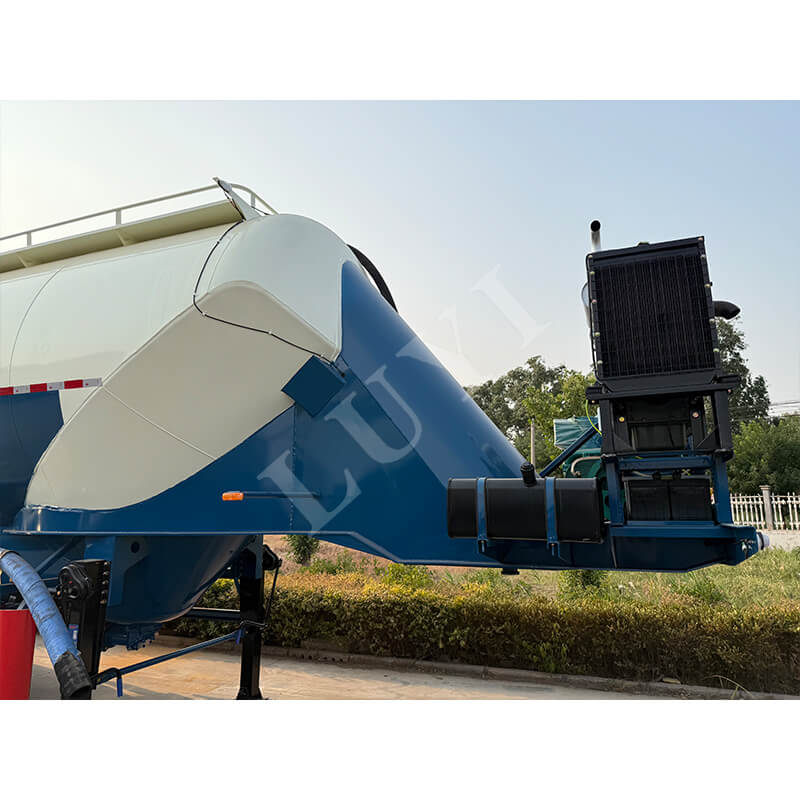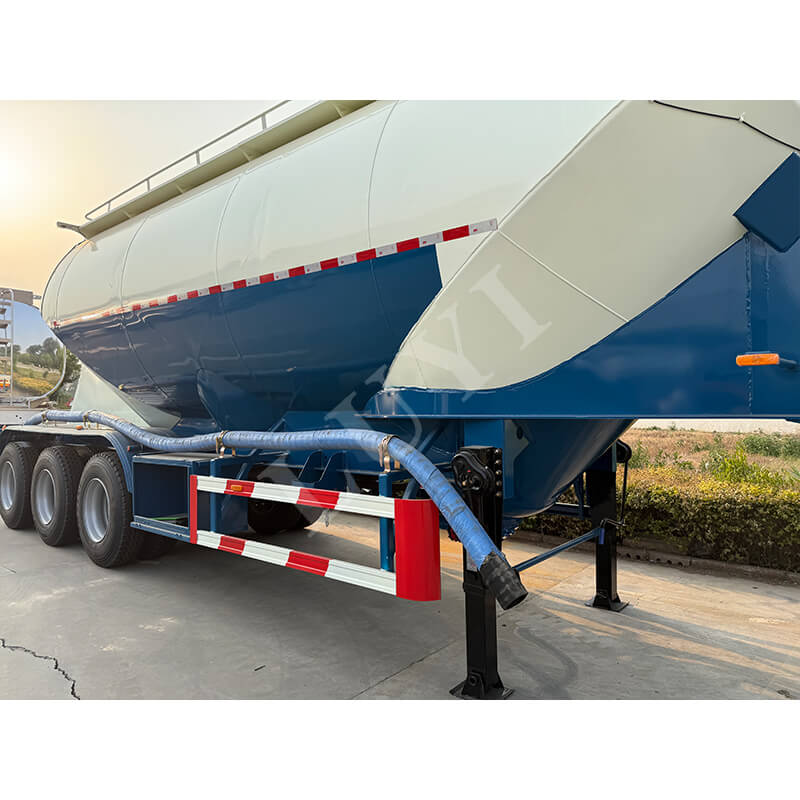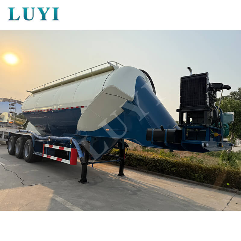 Sơ mi rơ moóc thùng xi măng số lượng lớn loại V Luyi 48 mét khối (còn gọi là xe bồn chứa bột), xuất xứ từ tỉnh Sơn Đông, Trung Quốc, là loại sơ mi rơ moóc chất lượng cao được thiết kế đặc biệt để vận chuyển bột xi măng số lượng lớn. Toàn bộ xe được làm bằng thép, thép kênh 16# dùng cho dầm bên, đảm bảo kết cấu chắc chắn và bền bỉ. Nó có khả năng chịu tải hiệu quả tối đa là 48 mét khối, có thể đáp ứng hiệu quả nhu cầu vận chuyển xi măng số lượng lớn với công suất lớn.