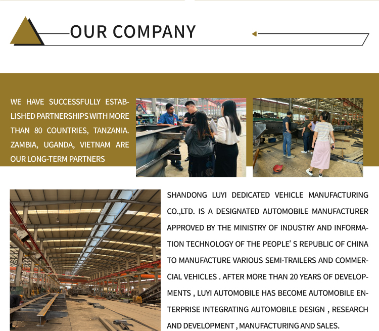 Xe moóc có hệ thống treo khí nén đáng tin cậy để mang lại cảm giác lái ổn định, kết hợp với trục 13/16 Tấn Fuwa/BPW/CIMC và các tùy chọn lốp linh hoạt (11.00r20, 12r22.5, 315, 385). Nó được trang bị thiết bị hạ cánh tiêu chuẩn nặng 28 tấn, chân đỡ JOST D200T và chốt cỡ lớn 2,0 inch (50 mm)/3,5 inch (90 mm) để kết nối máy kéo an toàn. Hệ thống phanh hai dòng đảm bảo an toàn, màu sắc có thể tùy chỉnh, khiến nó trở thành sự lựa chọn bền bỉ, dễ thích ứng cho việc vận chuyển hạng nặng.