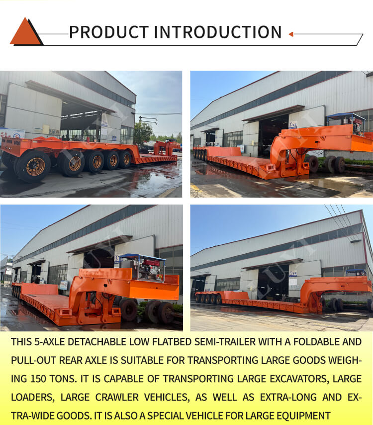 Sơ mi rơ moóc cổ ngỗng 5 trục có thể tháo rời LUYI, được sản xuất tại Sơn Đông, Trung Quốc, là phương tiện vận tải hạng nặng hiệu suất cao được thiết kế cho nhu cầu vận chuyển hàng hóa siêu nặng.