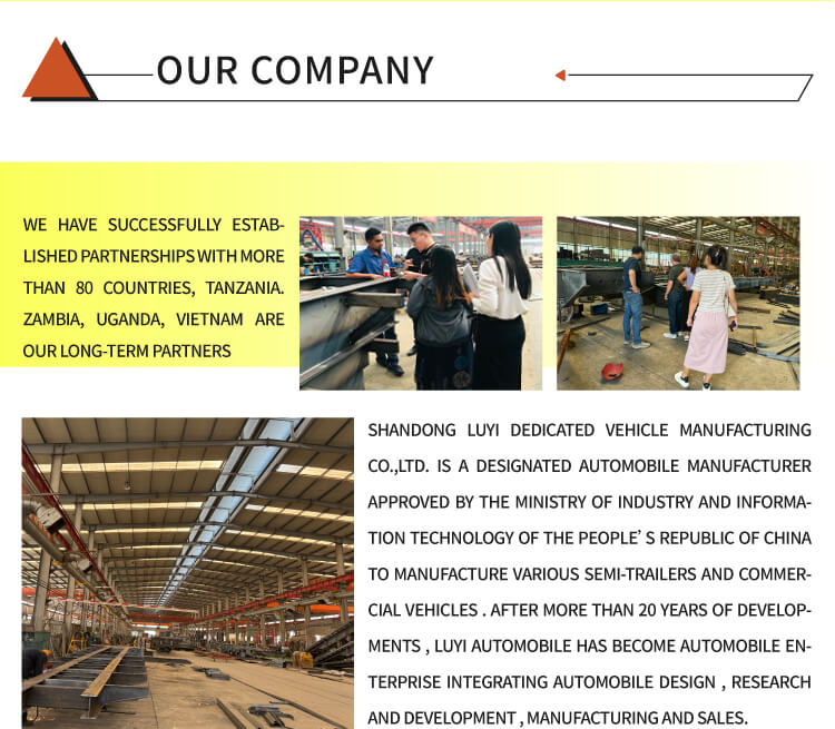 Nhà máy của chúng tôi không chỉ sản xuất máy kéo mà còn sản xuất xe ben, xe phun nước, xe cần cẩu, xe trộn, rơ moóc tự đổ, rơ moóc bồn, rơ moóc sàn thấp, rơ moóc loại bỏ bụi, v.v. Nhà máy của chúng tôi có quy mô lớn và có thể tùy chỉnh các sản phẩm khác nhau theo yêu cầu khác nhau của khách hàng