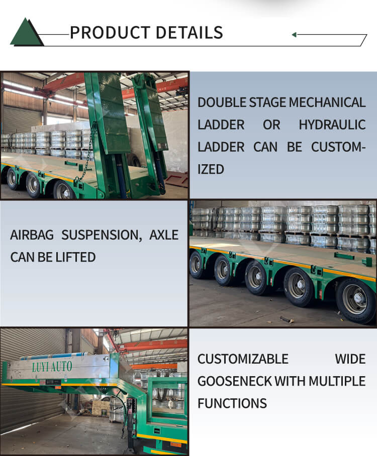 Có nguồn gốc từ tỉnh Sơn Đông, Trung Quốc, Sơ mi rơ moóc giường thấp 6 trục 100 tấn Luyi là loại xe tải rơ moóc hoàn toàn mới được thiết kế đặc biệt để vận chuyển thiết bị hạng nặng, có thể đáp ứng hiệu quả nhu cầu tải hàng hóa.