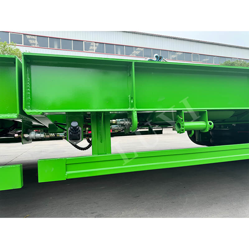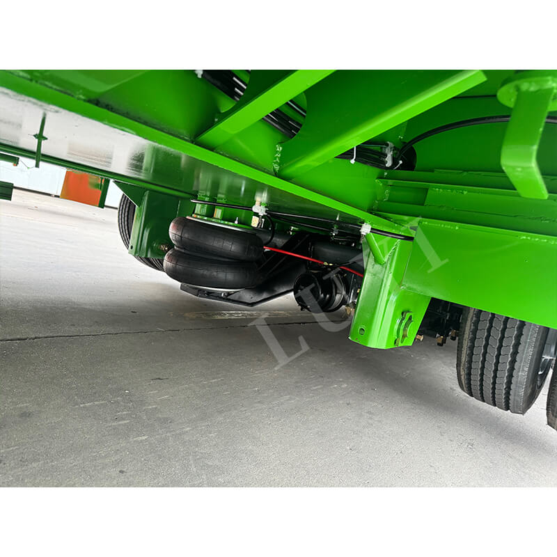 Được trang bị trục thương hiệu Fuwa 13 tấn, hệ thống treo cơ khí và hệ thống phanh đôi, xe mang lại phản ứng phanh nhạy và lái xe an toàn. Tương thích với các thông số kỹ thuật lốp khác nhau bao gồm 11.00r20, 12r22.5, 315 và 385, nó có tải trọng hiệu quả tối đa là 60.000 kg và khả năng chịu tải từ 100 đến 120 tấn. Được cấu hình với các chân chống tiêu chuẩn nặng 28 tấn, nó đi kèm với các chốt JOST 2 inch (50 mm) hoặc 3,5 inch (90 mm) tùy chọn. Có thể tùy chỉnh về màu sắc, đây là sự lựa chọn lý tưởng cho các tình huống vận chuyển hạng nặng.