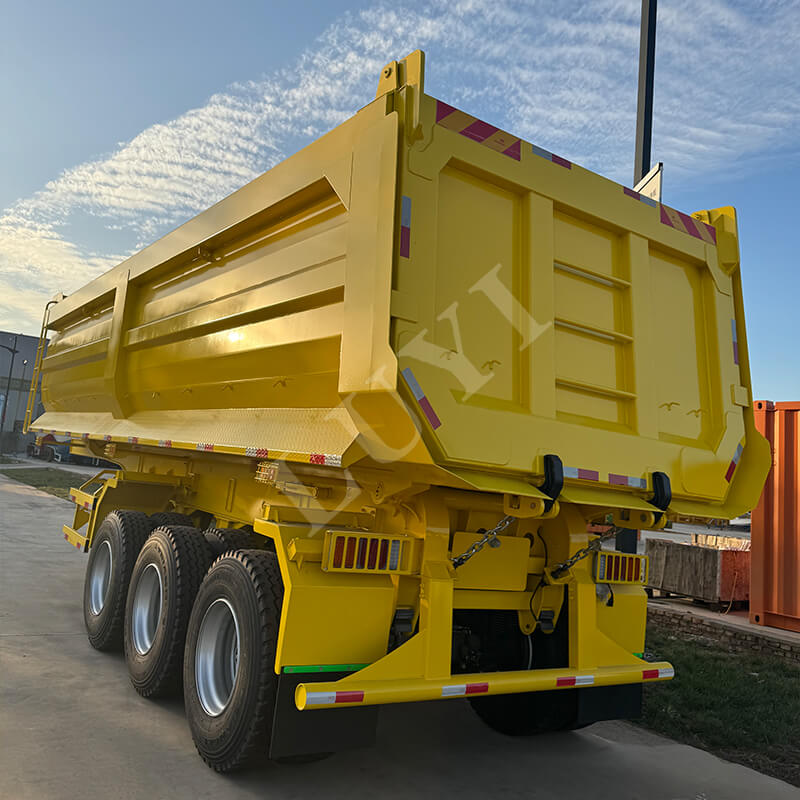 Sơ mi rơ moóc lật sau loại chữ U 3 trục thủy lực hạng nặng LUYI, có nguồn gốc từ tỉnh Sơn Đông, Trung Quốc, là loại xe ben rơ moóc được thiết kế đặc biệt cho các vật liệu như cát, sỏi và ngũ cốc. Vật liệu có thể được lựa chọn từ thép carbon hoặc hợp kim nhôm, có tính đến cả yêu cầu về độ bền và trọng lượng nhẹ. Kích thước thân xe là 12500×2500×3600 mm, tải trọng hiệu quả tối đa có thể đạt tới 60 tấn, đáp ứng nhu cầu vận chuyển tải trọng nặng.