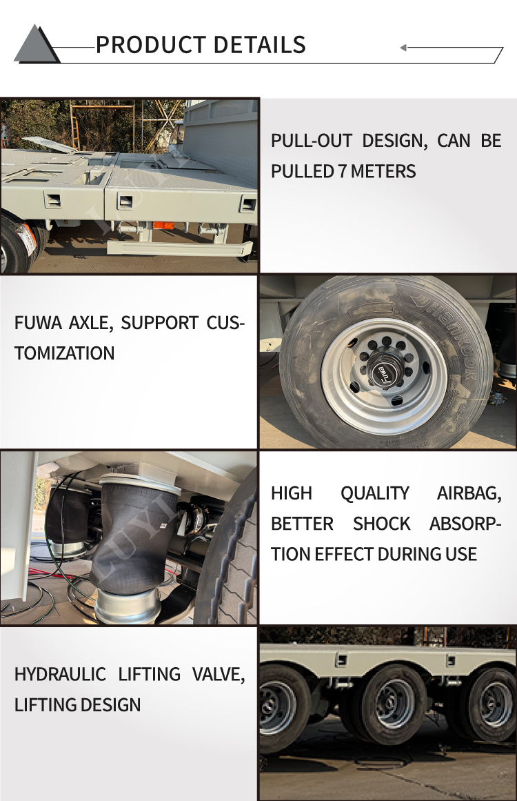 Dầm chính được chế tạo từ thép cường độ cao T700/Q345, kết hợp với kết cấu 8 trục và hệ thống treo cơ/khí tùy chọn, đảm bảo phân bổ trọng lượng ổn định và nâng cao độ an toàn. Hệ thống phanh kép đảm bảo an toàn khi lái xe, trong khi càng đáp tiêu chuẩn nặng 28 tấn cải thiện sự thuận tiện khi xếp và dỡ hàng. Được trang bị nhiều thông số kỹ thuật của lốp (11.00r20, 12r22.5, 315, 385) và lốp thẳng đứng tiêu chuẩn JOST (2 inch/50mm hoặc 3,5 inch/90mm), sơ mi rơ moóc có sơn polyurethane chống ăn mòn và cung cấp các màu sắc có thể tùy chỉnh để đáp ứng đa dạng nhu cầu vận chuyển hạng nặng.