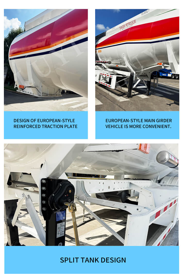 Sơ mi rơ moóc thùng nhiên liệu 3 thùng LUYI 43.000L, được sản xuất tại Sơn Đông, Trung Quốc, là một thiết bị vận chuyển dầu chuyên nghiệp, hoàn toàn mới. Thân của nó được làm bằng thép, có kích thước 1085025003800mm. Thiết kế 3 thùng cho phép phân loại các sản phẩm dầu, dung tích lớn 43.000L kết hợp với tải trọng tối đa 20.001-25.000kg đáp ứng nhu cầu vận chuyển dầu hiệu quả.