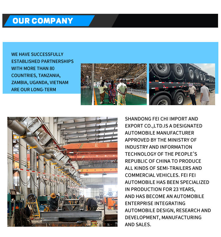 Nhà máy của chúng tôi không chỉ sản xuất máy kéo mà còn sản xuất xe ben, xe phun nước, xe cần cẩu, xe trộn, rơ moóc tự đổ, rơ moóc bồn, rơ moóc sàn thấp, rơ moóc loại bỏ bụi, v.v. Nhà máy của chúng tôi có quy mô lớn và có thể tùy chỉnh các sản phẩm khác nhau theo yêu cầu khác nhau của khách hàng