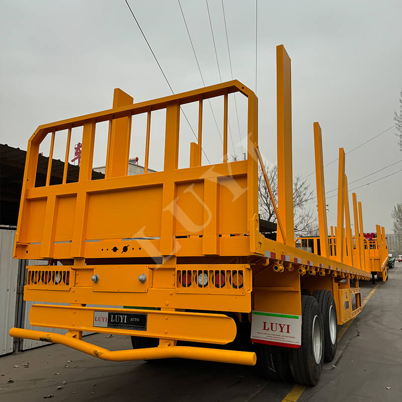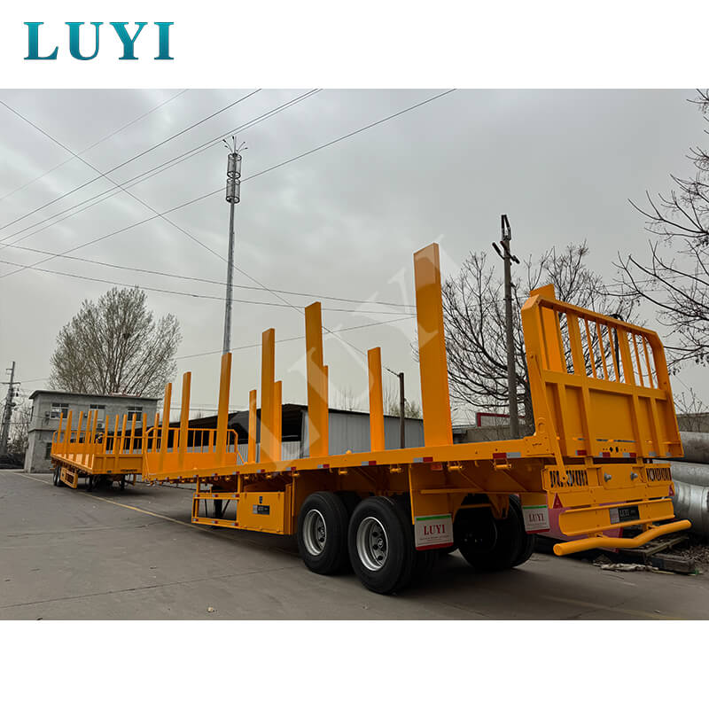 Rơ moóc cột phẳng 2 trục 40 tấn của LUYI được thiết kế để vận chuyển gỗ với các tùy chọn tùy chỉnh phong phú. Điều chỉnh chiều cao của tủ bên (có sẵn 30-80cm) để phù hợp với gỗ tròn, gỗ xẻ hoặc các sản phẩm gỗ khác, đồng thời chọn giữa thép tấm kẻ ca rô hoặc sàn phủ chống trượt để tăng cường độ bám.