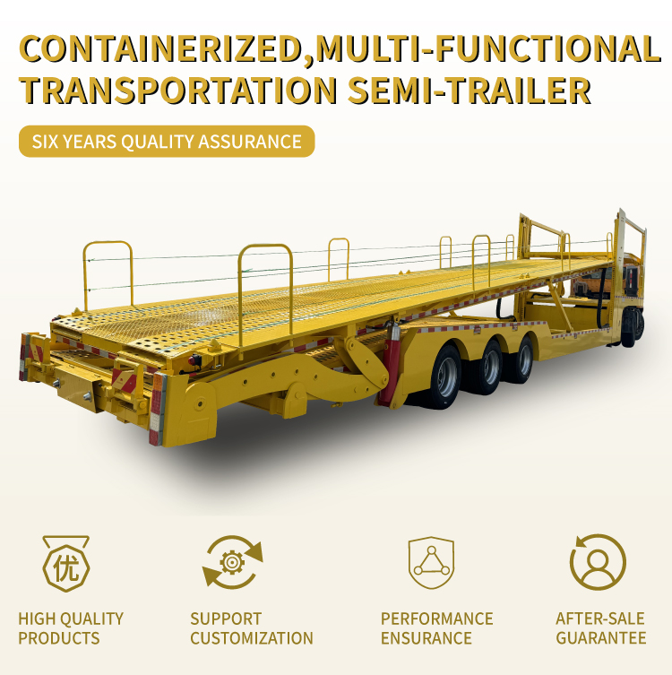 Sơ mi rơ moóc chở ô tô hai tầng kèm 4 trục LUYI của Shandong Luyi Special Vehicle Manufacturing Co., Ltd. được thiết kế để giao ô tô mới, vận chuyển ô tô đã qua sử dụng và các tình huống khác. Tự hào với khả năng chịu tải 40-60 tấn với cấu trúc 4 trục, thân xe được bao bọc hoàn toàn bảo vệ xe khỏi bị hư hại từ bên ngoài. Bệ xếp chồng hai tầng tăng khả năng chất tải lên 6-8 chiếc, trong khi giường nghiêng giúp đơn giản hóa việc chất tải và dỡ tải đối với các mẫu xe có khung gầm thấp. Được làm bằng thép, nó có độ bền cao, chống mài mòn và tiết kiệm chi phí, lý tưởng cho vận chuyển thương mại hạng nặng, tần suất cao.