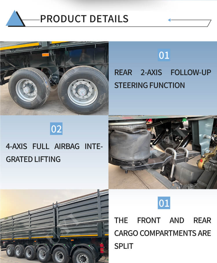 Sơ mi rơ moóc 6 trục Luyi hay còn gọi là sơ mi rơ moóc xe tải sàn phẳng đến từ tỉnh Sơn Đông, Trung Quốc. Được làm bằng thép chất lượng cao, nó mang lại hiệu suất đáng tin cậy khi vận chuyển hạng nặng, với tải trọng hiệu dụng tối đa là 60 tấn, lý tưởng để chở container và hàng rời.