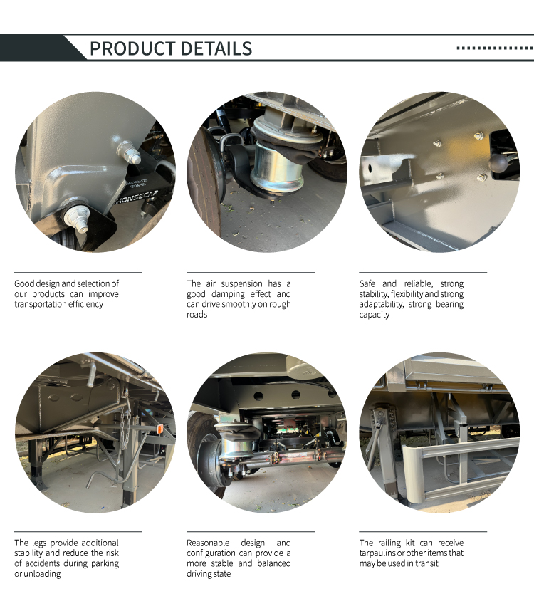 Sơ mi rơ moóc 4 trục loại 60 tấn LUYI được tùy chỉnh để vận chuyển hàng rời hạng nặng trong các tình huống như mỏ và các dự án cơ sở hạ tầng. Nó sử dụng cấu trúc dỡ hàng thủy lực nghiêng sang một bên, cho phép dỡ hàng nhanh chóng trong không gian hẹp và làm trống toàn bộ khoang trong vòng vài phút, cải thiện đáng kể hiệu quả luân chuyển hàng hóa. Các bộ phận chịu lực lõi được làm bằng thép có độ bền cao, kết hợp với thiết kế 4 trục và túi khí treo khí nén. Điều này không chỉ phân phối áp lực của tải nặng 60 tấn và đáp ứng các yêu cầu quy định mà còn điều chỉnh độ cứng hấp thụ sốc theo tải trọng, giảm rung lắc hàng hóa và tác động lên đường. Toàn bộ chiếc xe cân bằng khả năng dỡ hàng hiệu quả, độ bền khi chịu tải nặng và độ ổn định khi lái, khiến nó trở thành sự lựa chọn đáng tin cậy để vận chuyển hàng rời hạng nặng.