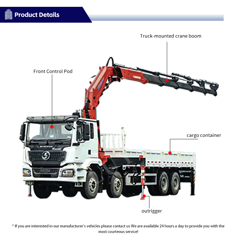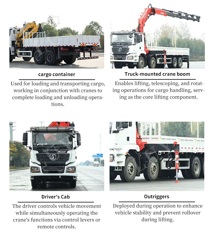 Xe cẩu Shacman 8*4 có tay gấp có mômen nâng định mức là 28 tấn, chiều cao nâng tối đa 23,5 m và khoảng cách làm việc 20,8 m, đáp ứng hoàn hảo nhu cầu nâng đa dạng trong các tình huống xây dựng. Với trọng lượng tổng thể 2035kg, xe tải có kết cấu nhỏ gọn và linh hoạt, thiết kế tay đòn gấp giúp tiết kiệm đáng kể không gian vận chuyển và đỗ xe.