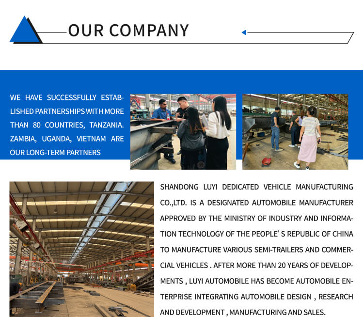 Nhà máy của chúng tôi không chỉ sản xuất máy kéo mà còn sản xuất xe ben, xe phun nước, xe cần cẩu, xe trộn, rơ moóc tự đổ, rơ moóc bồn, rơ moóc sàn thấp, rơ moóc loại bỏ bụi, v.v. Nhà máy của chúng tôi có quy mô lớn và có thể tùy chỉnh các sản phẩm khác nhau theo yêu cầu khác nhau của khách hàng